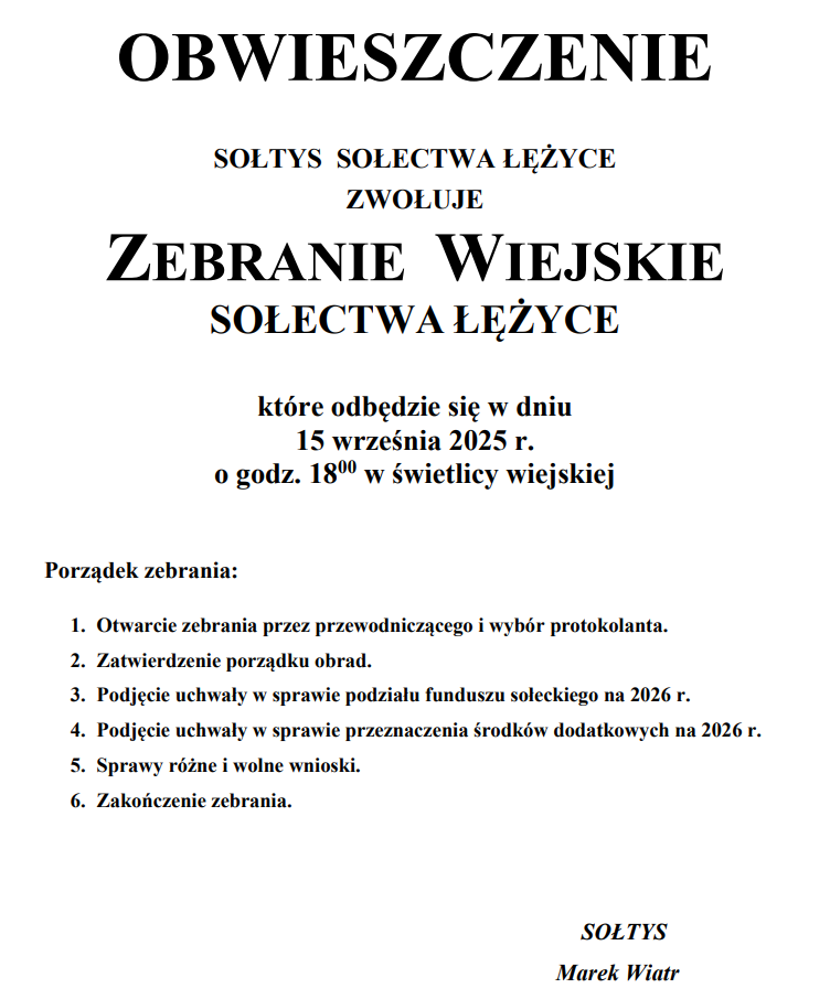 DATA ZEBRANIA WIEJSKIEGO: 29 styczeń 2025